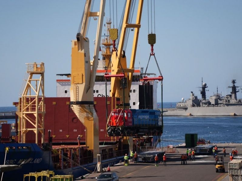 Descargan tres locomotoras de Fepasa destinadas al proyecto MAPA en el Terminal 2 del Puerto de Valparaíso